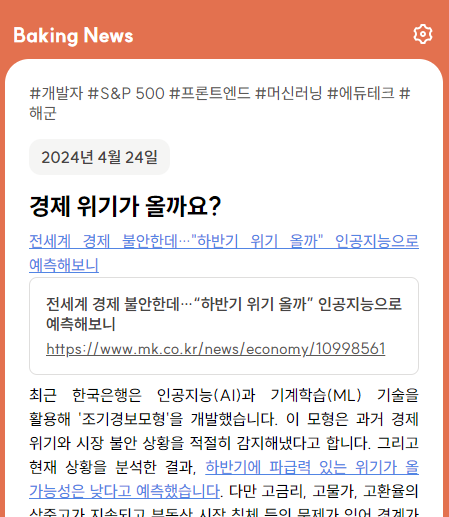 Baking News: 꼭 너만을 위한 AI 뉴스레터(https://baking-news.vercel.app)