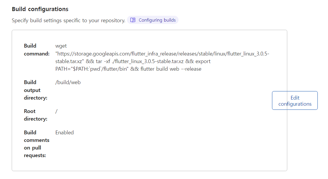 Cloudflare Page는 프론트엔드 프로젝트를 간편하게 배포할 수 있게 도와주는 플랫폼입니다. 빌드 명령어 프리셋으로 React, Vue 등 여러 프레임워크를 지원하고 있지만. Flutter Web은 지원되지 않습니다. 다음 Build Command를 통해서 빌드머신에 직접 플러터를 설치하고 실행할 수 있습니다. Build Output Directory는 /build/web로 설정하면 됩니다.