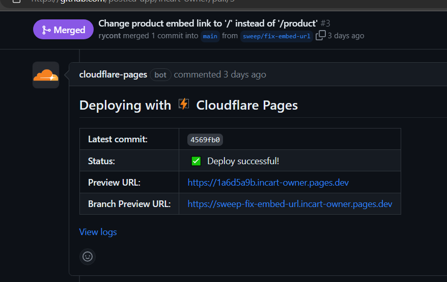 중요: PR을 만들면 변경사항을 프리뷰할 수 있도록 추가로 배포해줌